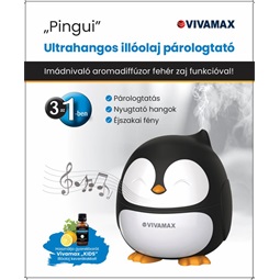 Ki ne szeretne bele azonnal ebbe a cuki kis pingvinbe? Ráadásul nem csak kedves formája van, hanem rendkívül sokoldalú is: ultrahangos hideg porlasztással illóolajok párologtatására is alkalmas, valamint 7 féle színben világít, így éjszakai fényként is funkcionálhat, továbbá 10 féle dallam/hang/fehér zaj lejátszására is képes.